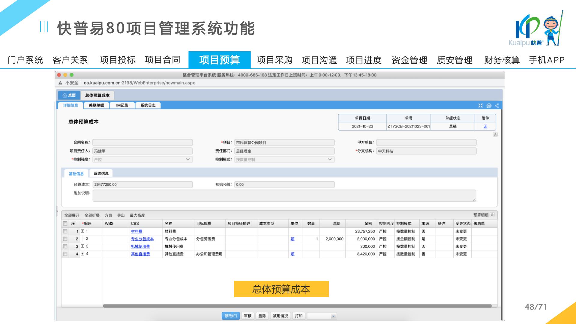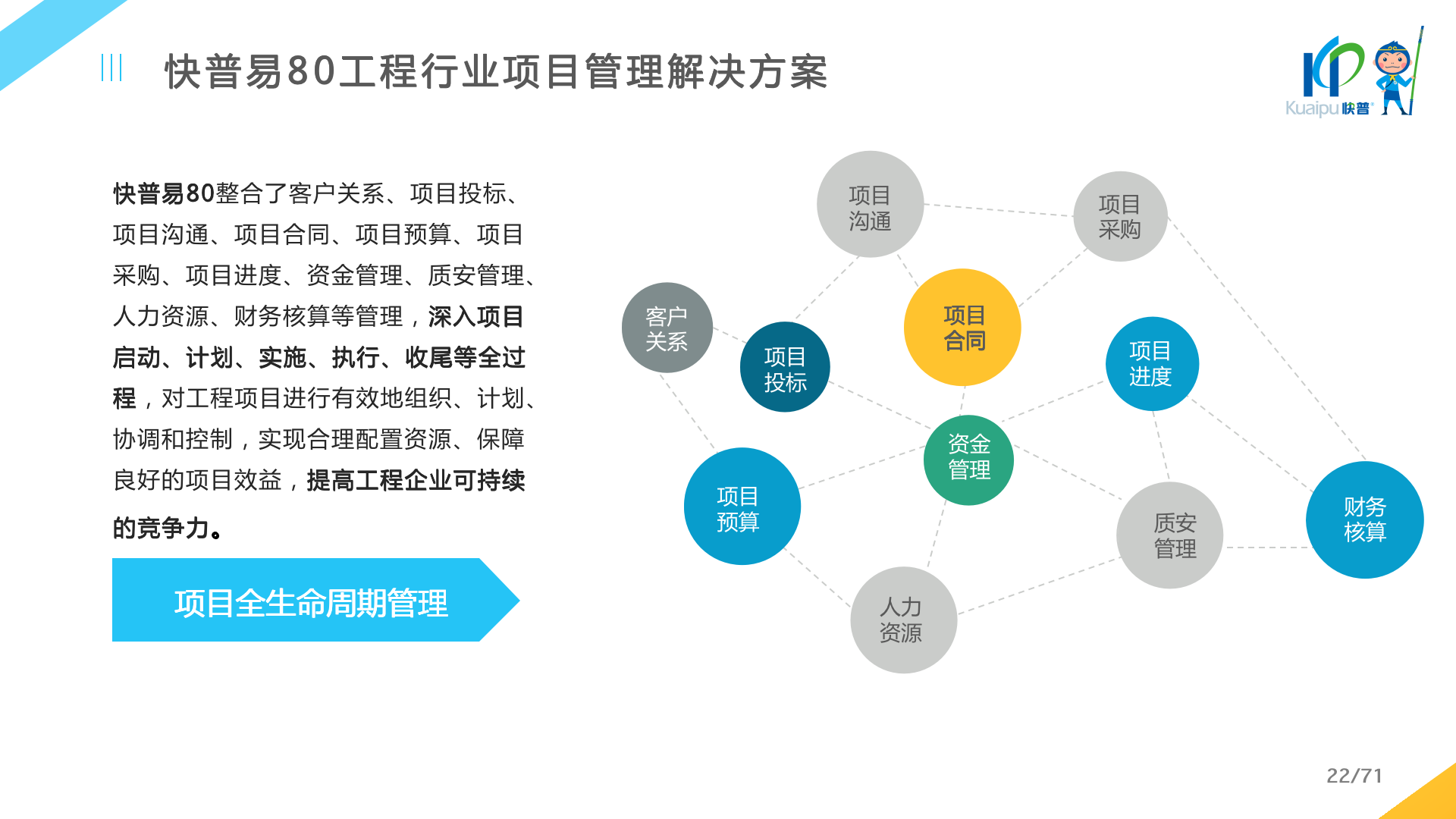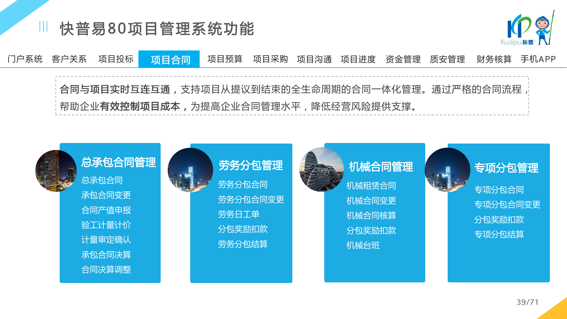 以項目管理為核心,通過“四控、四管、一協(xié)調”方式,對項目進度、成本、資金、質量安全進行全面控制,實現(xiàn)投標管理、合同管理、物資管理、預算管理等項目全生命周期項目的數(shù)字化管理,實現(xiàn)資源合理配置、保障良好的項目效益。