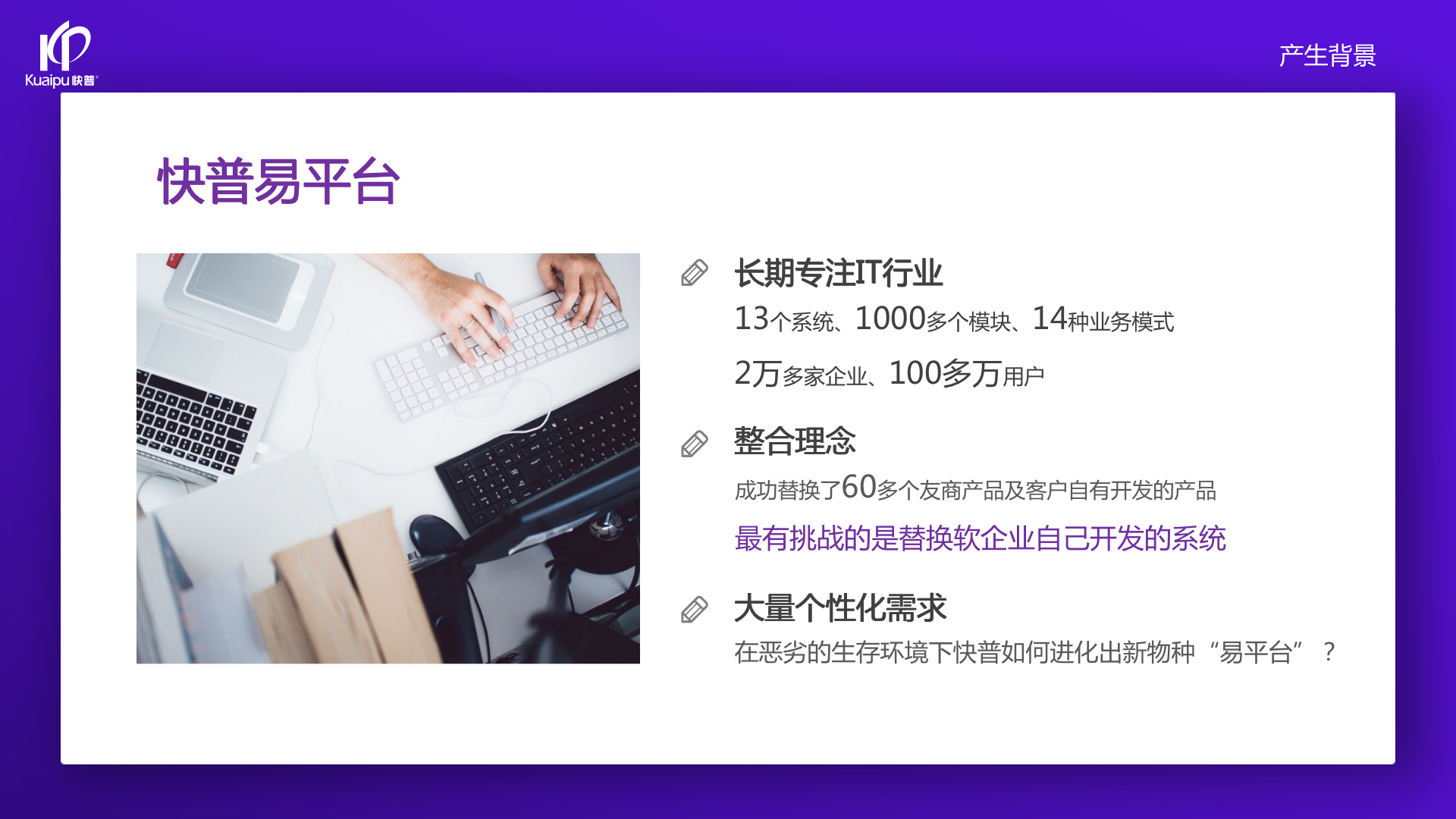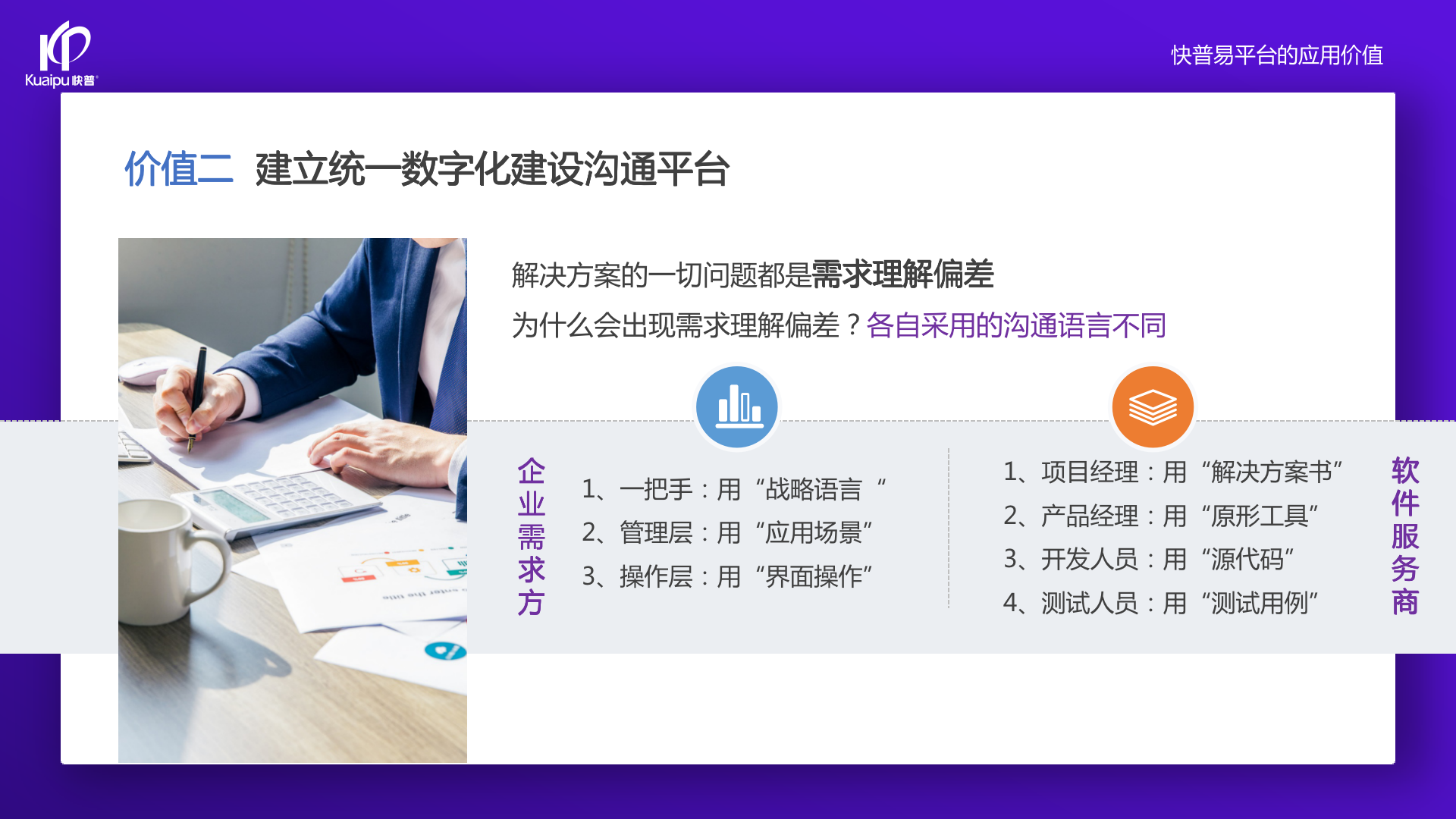 過(guò)去企業(yè)用的ERP系統(tǒng),都不能完全理解、看透它的邏輯。因?yàn)椴涣私膺壿?,就看不透,就用不好系統(tǒng)。快普經(jīng)歷了大量的客戶,發(fā)現(xiàn)如果用戶理解系統(tǒng)邏輯,會(huì)用得更好,提的需求也更合理、更結(jié)構(gòu)化。但過(guò)去確實(shí)沒(méi)辦法讓所有普通用戶看懂源代碼。