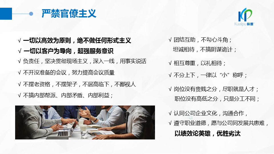 2018年9月,快普董事長(zhǎng)溫祝平先生發(fā)表《快普經(jīng)營(yíng)哲學(xué)2.0》,指出“以人為本、經(jīng)營(yíng)人心”的經(jīng)營(yíng)理念,強(qiáng)調(diào)進(jìn)一步建設(shè)“幸福企業(yè)文化”的重要性。