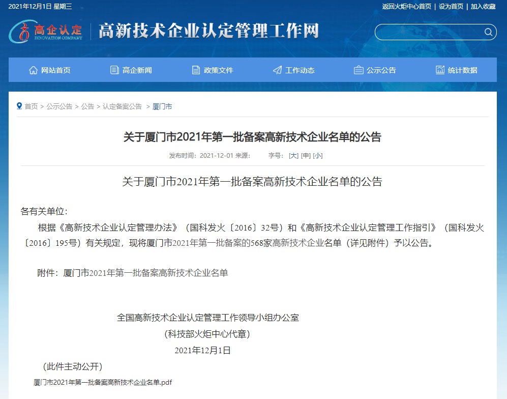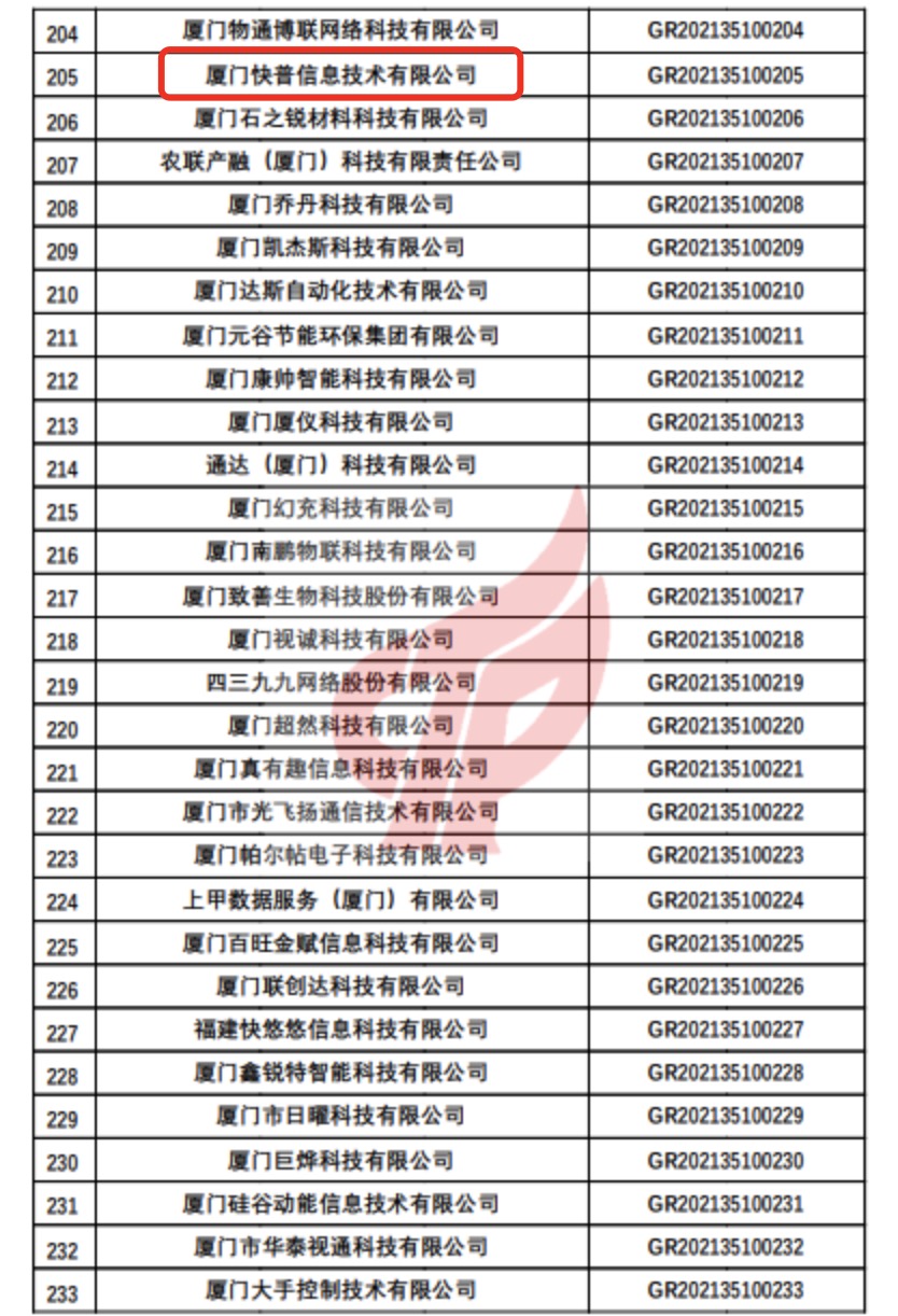 自接到廈門市科技局發(fā)出的高新技術(shù)企業(yè)申報(bào)通知后,廈門快普踴躍報(bào)名,積極配合申報(bào)工作,認(rèn)真準(zhǔn)備申報(bào)材料。經(jīng)合規(guī)性審查、專家評(píng)審、市高新技術(shù)企業(yè)認(rèn)定管理辦公室聯(lián)合審核,廈門市上報(bào)的第一批備案國(guó)家級(jí)高企名單在國(guó)家高新技術(shù)企業(yè)認(rèn)定管理工作網(wǎng)上公示,廈門快普憑借穩(wěn)健的經(jīng)營(yíng)表現(xiàn)和先進(jìn)的技術(shù)實(shí)力位列榜單,并獲得正式批復(fù)!