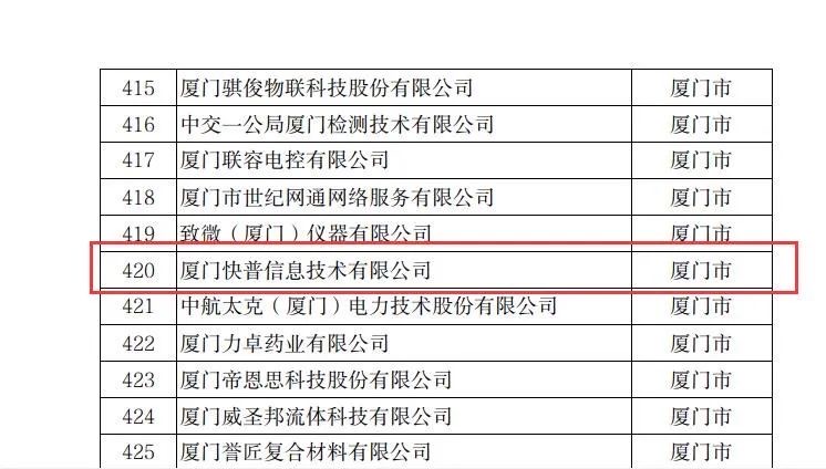 近日,福建省科學技術廳網(wǎng)站公示了“2022年福建省科技小巨人企業(yè)”名單,廈門快普信息技術有限公司以突出的自主創(chuàng)新能力、優(yōu)秀的技術研發(fā)成果、良好的業(yè)績和市場占有率,從全省遴選企業(yè)中脫穎而出,成功入選!