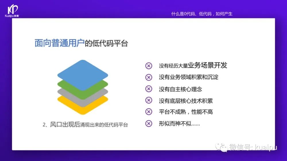 “這兩年快普已經(jīng)成功轉(zhuǎn)型為數(shù)字化平臺(tái)服務(wù)商,為客戶提供開(kāi)發(fā)平臺(tái)和解決方案(產(chǎn)品)等服務(wù)。我們先從開(kāi)發(fā)平臺(tái)說(shuō)起,目前市場(chǎng)上的零代碼、低代碼平臺(tái)大致可以分為這幾類(lèi):
