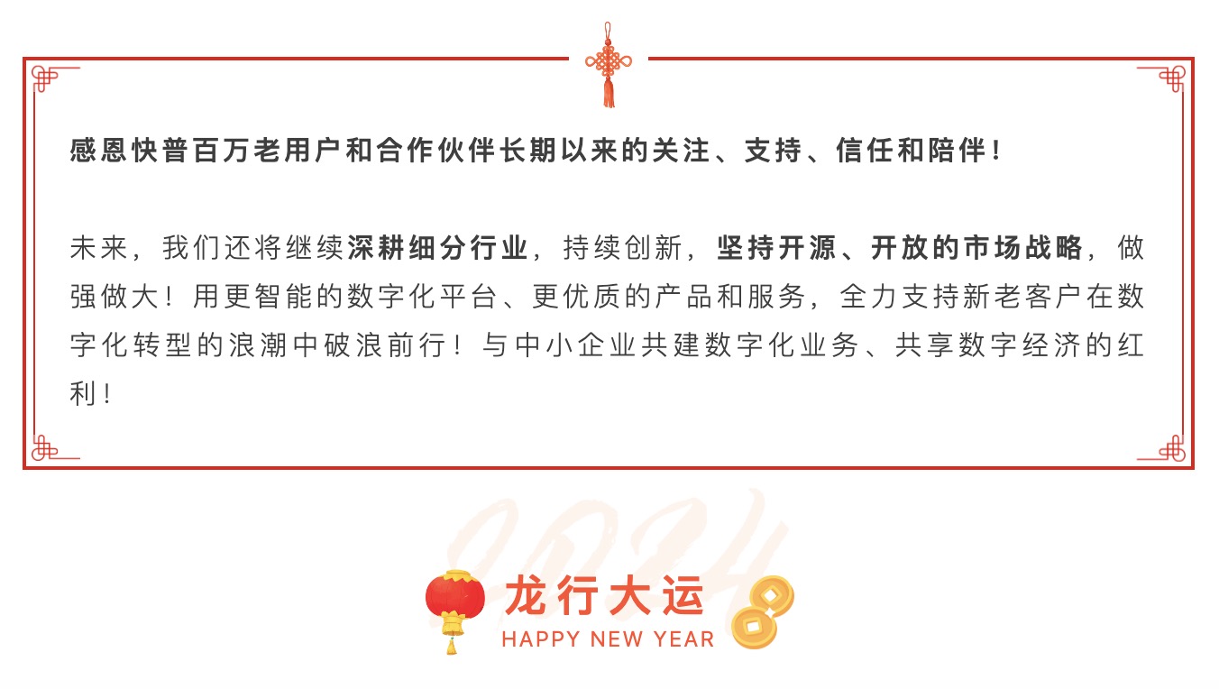 乘著數(shù)字經(jīng)濟的浪潮,快普堅守零代碼戰(zhàn)略、堅持自主創(chuàng)新,2023年成功完成了“平臺服務商”的轉(zhuǎn)型,贏得了更多企業(yè)的認可和選用,公司業(yè)績再創(chuàng)歷史新高!