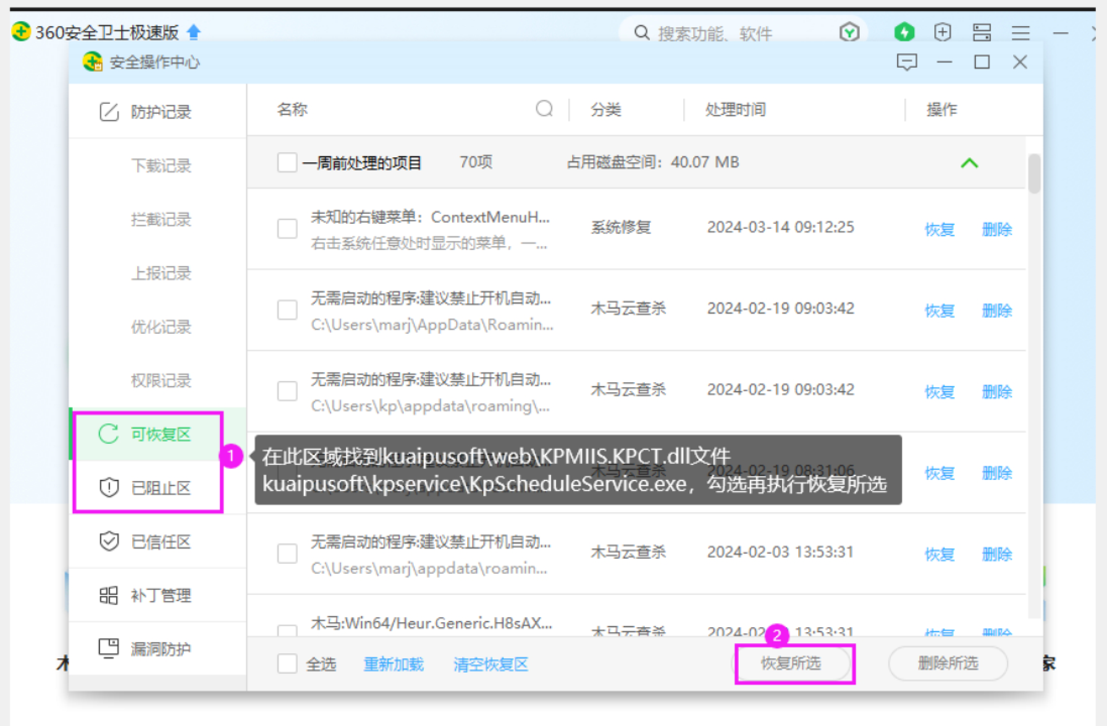 沒加入信任就被360隔離的,上面截圖那幾個文件可在隔離區(qū)恢復,恢復后按上面方法加入信任: