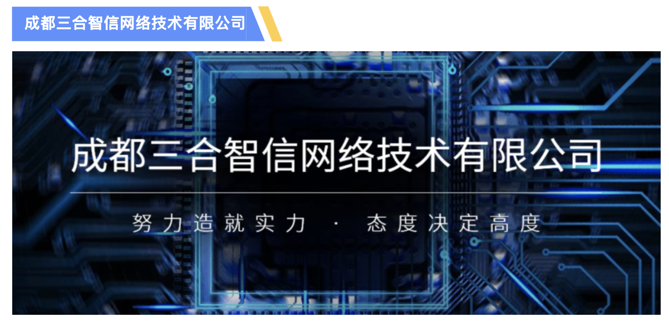 成都三合智信網(wǎng)絡技術(shù)有限公司是一家領(lǐng)先的系統(tǒng)集成公司,專注于信息系統(tǒng)、信息安全、網(wǎng)絡、超融合、多媒體會議系統(tǒng)、安防監(jiān)控以及綜合布線等多個領(lǐng)域。作為戴爾和浪潮的金牌代理商,公司致力于為客戶提供售前、售中及售后一站式服務,目前已在北京、上海、深圳、成都等城市設(shè)有6家分公司。